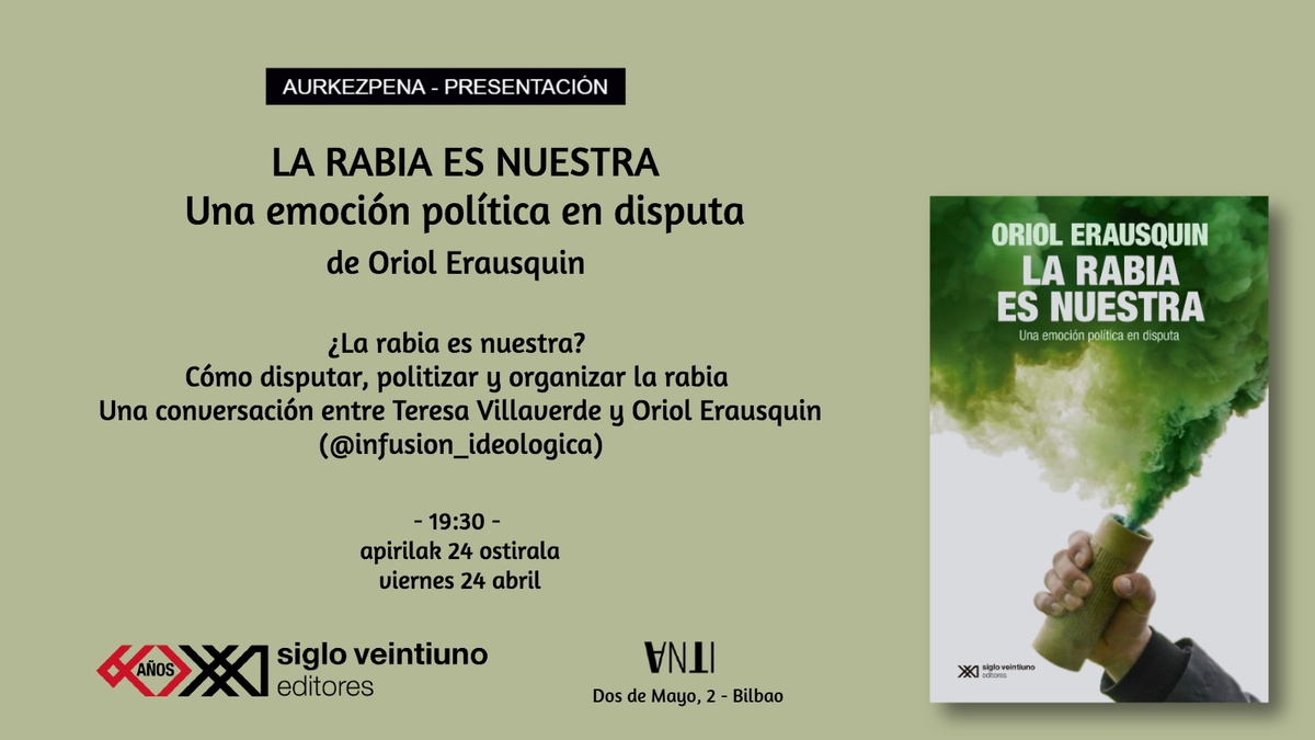 Aurkezpena // Presentación del libro LA RABIA ES NUESTRA Una emoción política en disputa de Oriol Erausquin (@infusion_ideologica)