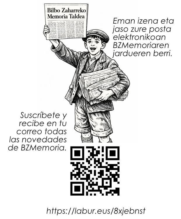 📰 BZMemoriaren jardueren berri jaso nahi duzu? Eman izena eta jaso informazioa zuzenean zure posta elektronikoan: auzo-ibilbideak, hitzaldiak, bisitak eta ekimen bereziak.