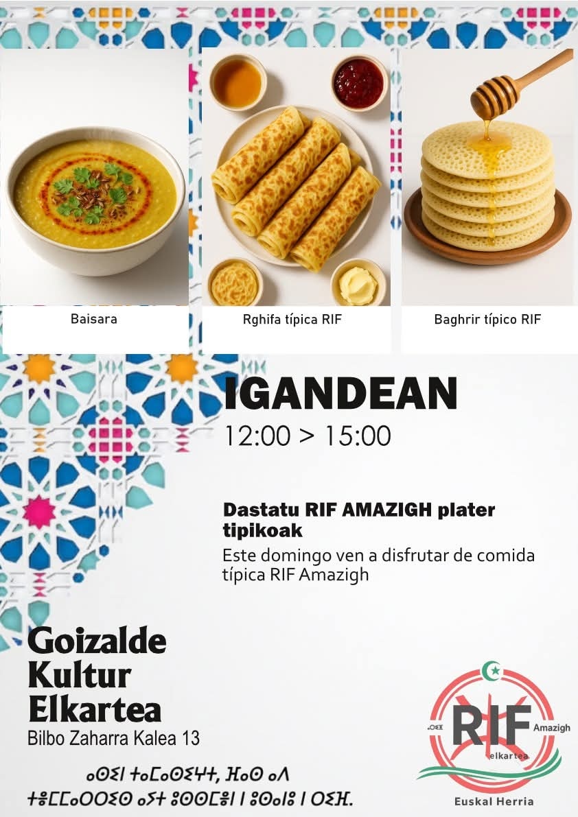 🌟 Domeka honetan etorri aniztasunaz eta Rif-eko sukaldaritza tradizionalaz gozatzera, gure lagun RIF Amazigh Elkartea EH-k prestatuta.
