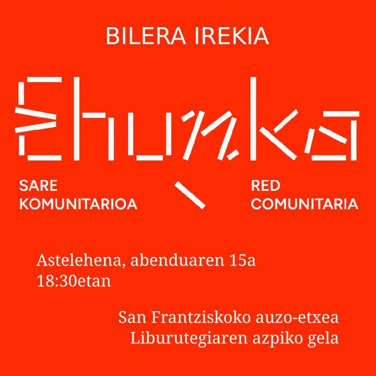 El próximo lunes celebraremos una reunión abierta a toda la red Ehunka para comenzar a preparar conjuntamente una campaña de comunicación y acciones para los próximos meses.