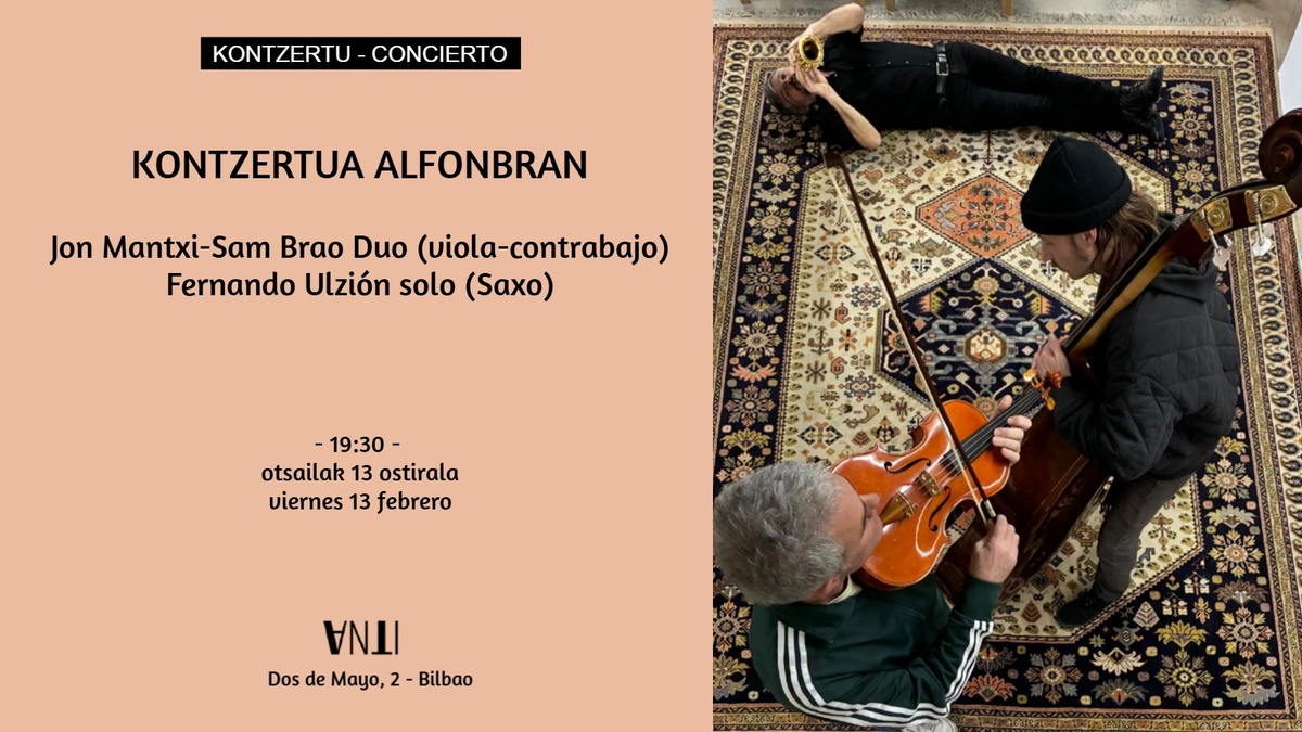 KONTZERTUA ALFONBRAN Jon Mantxi-Sam Brao Duo (viola-contrabajo) Fernando Ulzión solo (Saxo)