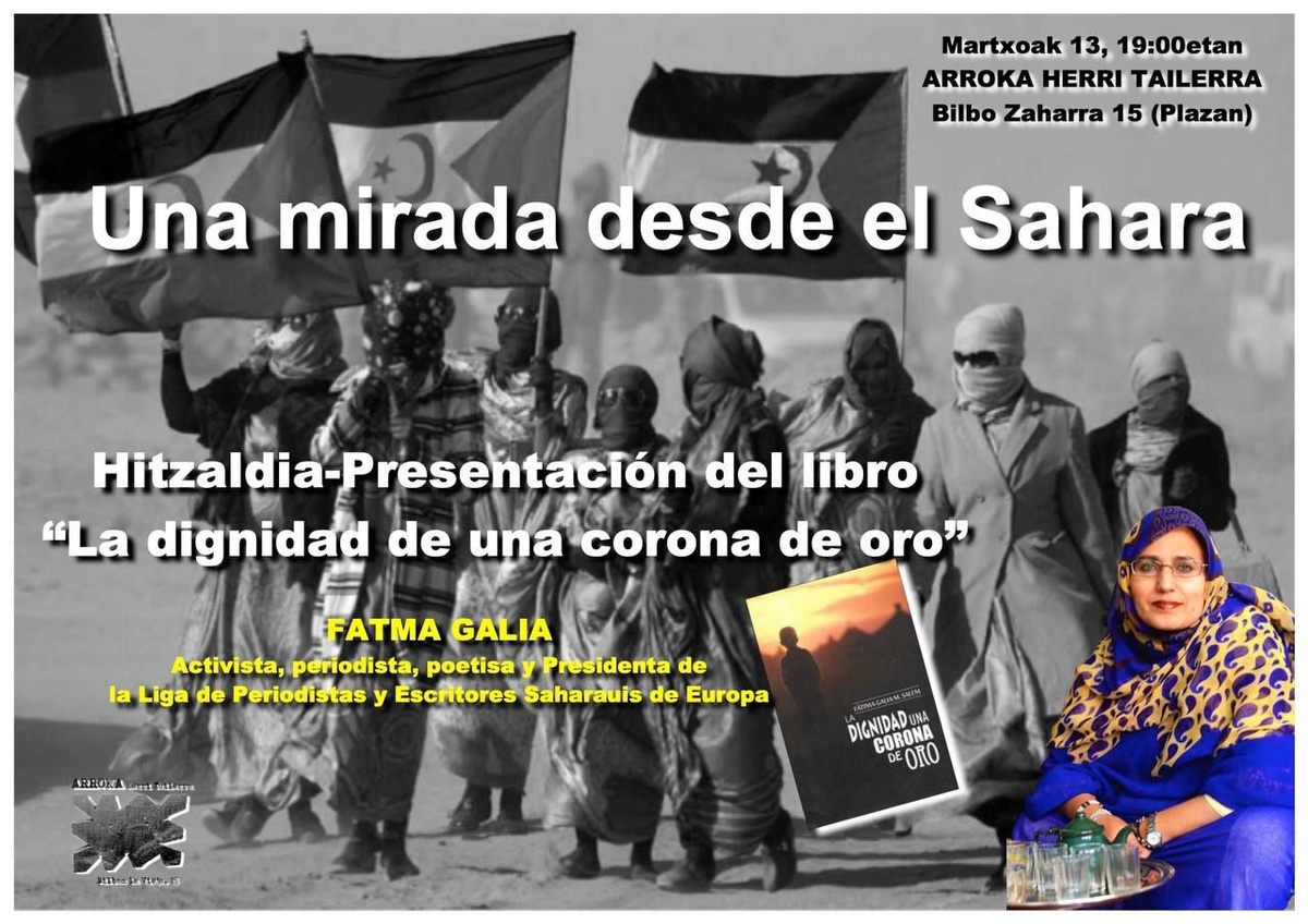 📢 📢 Fatma Galia Mohamed Salem, jatorri nomadakoa, El Aaiunen jaio zen, Tindoufeko kanpalekuetan (Aljeria) errefuxiatu gisa, Sahara basamortuko suen inguruan poesia entzuten hazi zen, Kuban ikasi zuen eta kazetaritza ikasketak amaitu zituen EHUn. Gaur egun, bere sorterrira itzuli da.
