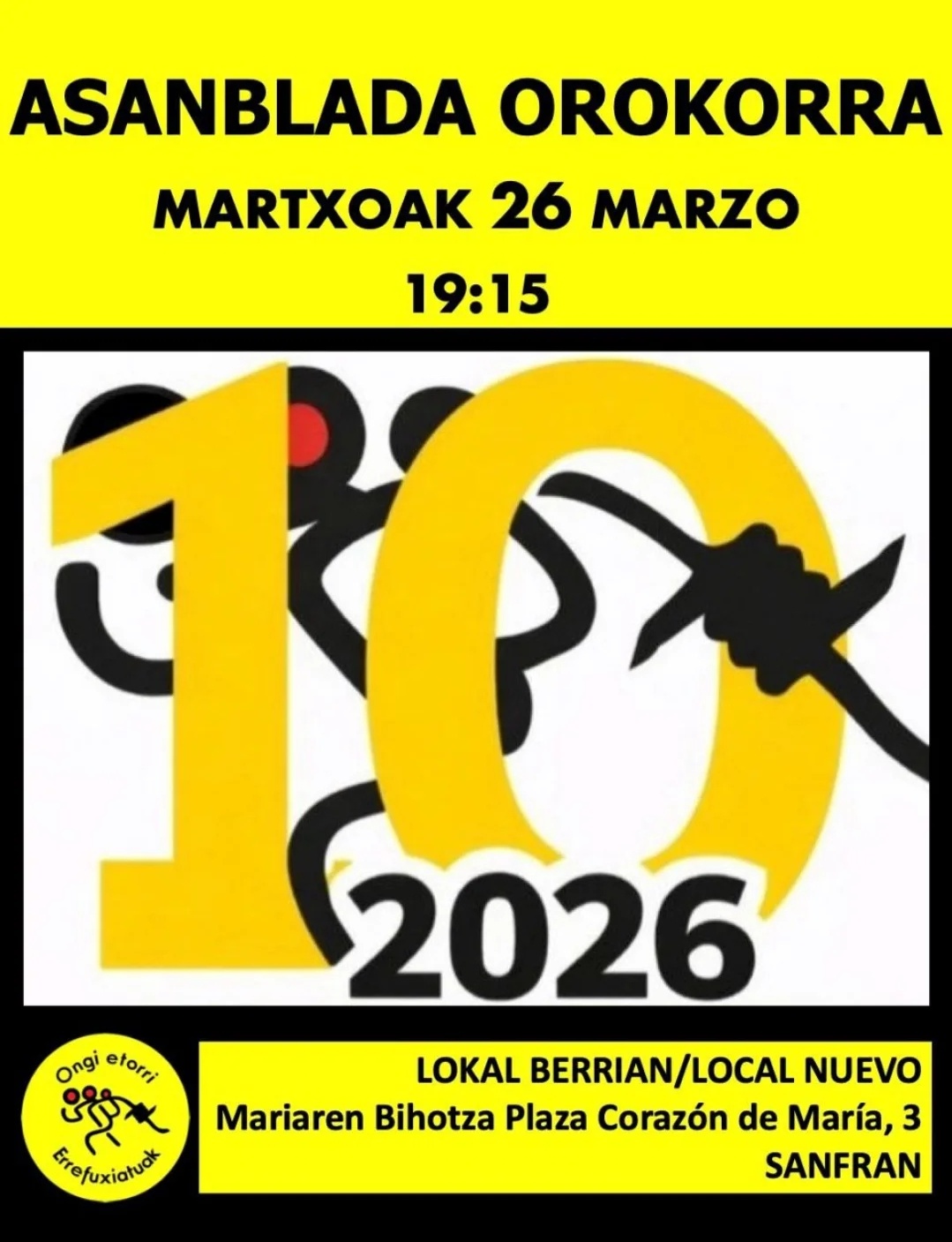 ONGI ETORRI ERREFUXIATUA ASANBLADA
